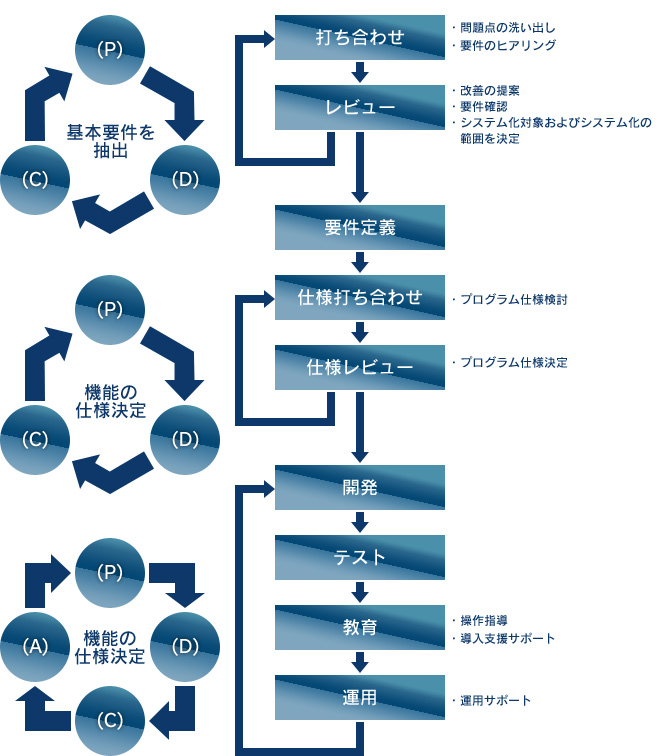 長年にわたって培った豊富な経験をもとに、お客様の視点でシステムの設計・開発を行います。